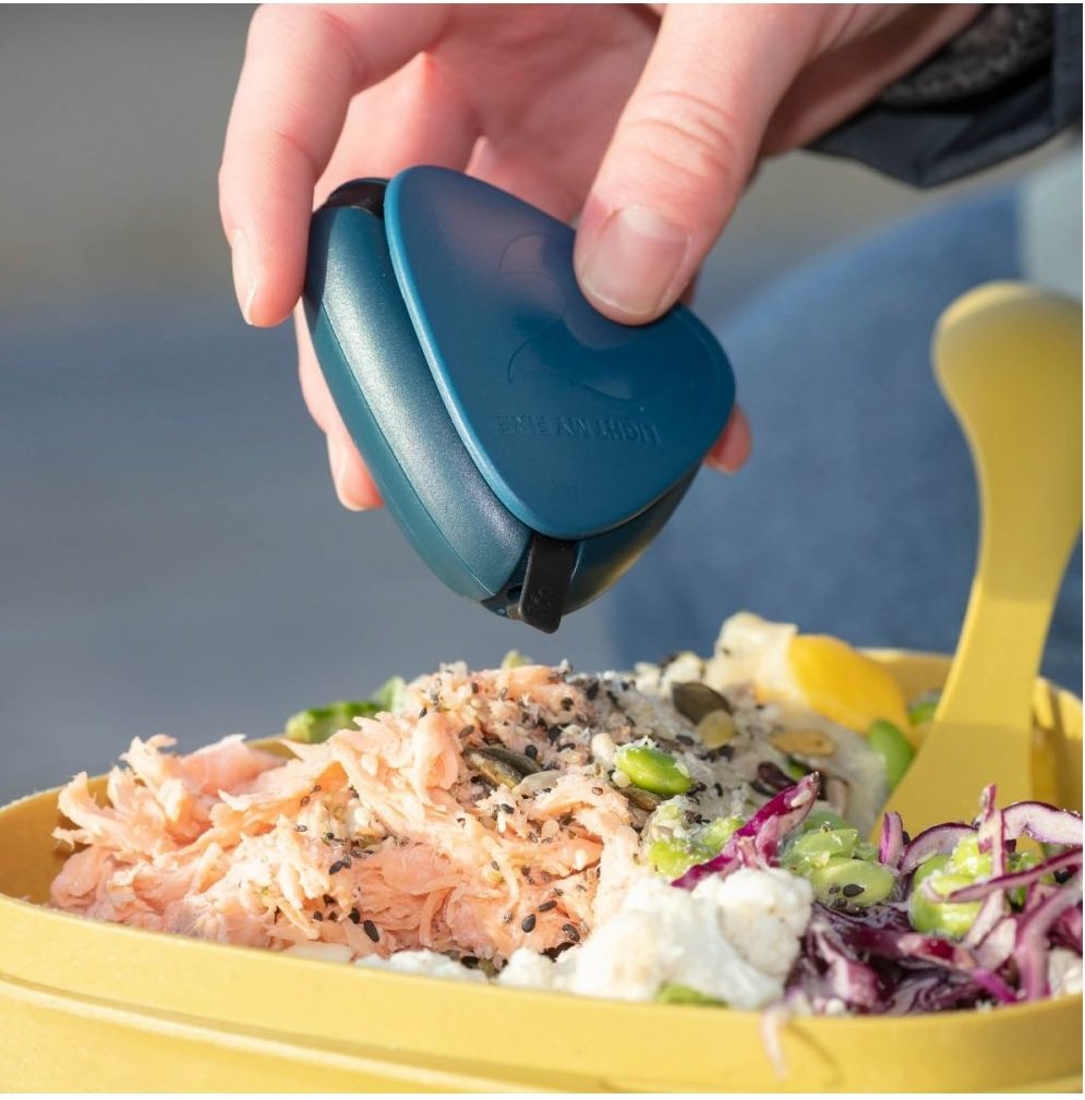 طراحی هوشمندانه این محصول به گونه ای است که تا سه نوع ادویه موردعلاقه ی خود را می توانید به همراه داشته باشید بدون اینکه نگران نفوذ رطوبت و یا هوا به داخل آن باشید. همچنین برای هر قسمت خروجی مجزا طراحی شده است تا برای استفاده هر قسمت فقط دریچه ی آن بخش را باز کنید. این محصول لایت مای فایر نیز همانند دیگر محصولات پایه گیاهی داشته و از الیاف چوب و نیشکر ساخته شده است و فاقد هر گونه مواد مضر می باشد. به راحتی تمیز و شسته می شود و قابلیت شستشو با ماشین ظرفشویی را نیز دارد.